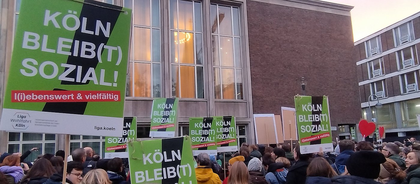 Am 15. Januar 2025 fand in Köln eine Mahnwache der Liga der Wohlfahrtsverbände auf dem Theo-Burauen-Platz statt.